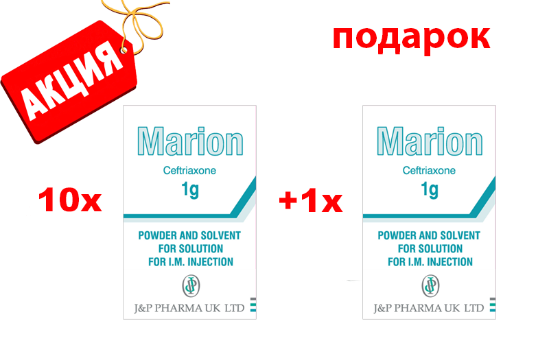 10уп. Марион пор. д/р-ра для в/м, в/в введ. 1г с раств. 3,5мл (срок 01.03.26)+1уп. Марион пор. д/р-ра для в/м, в/в введ. 1г с раств. 3,5мл (срок 01.03.26) в подарок, акция до 30.11.2025