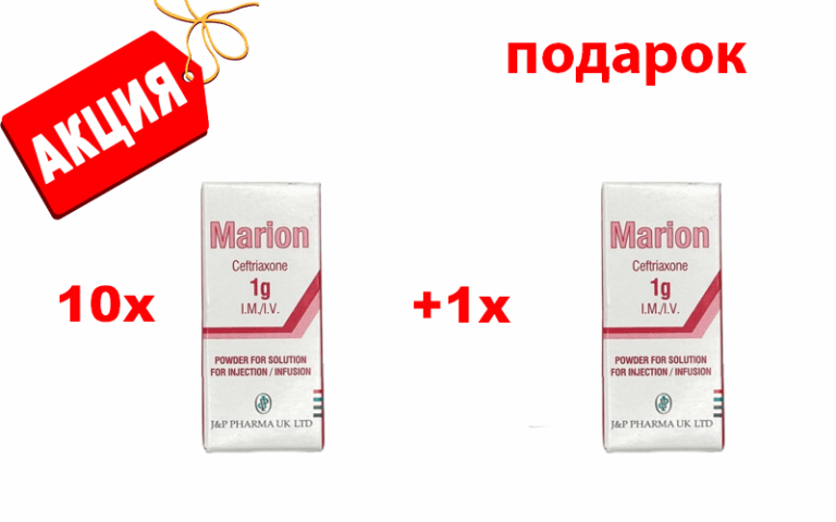 10уп. Марион пор. д/р-ра для в/м, в/в введ. 1г с раств. 3,5мл (срок 01.03.26)+1уп. Марион пор. д/р-ра для в/м, в/в введ. 1г с раств. 3,5мл