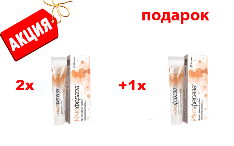 2уп. Имофераза крем косметический 30г (срок 01.10.2027) +1уп.Имофераза крем косметический 30г (срок 01.08.2026) в подарок, акция до 31.03.2026